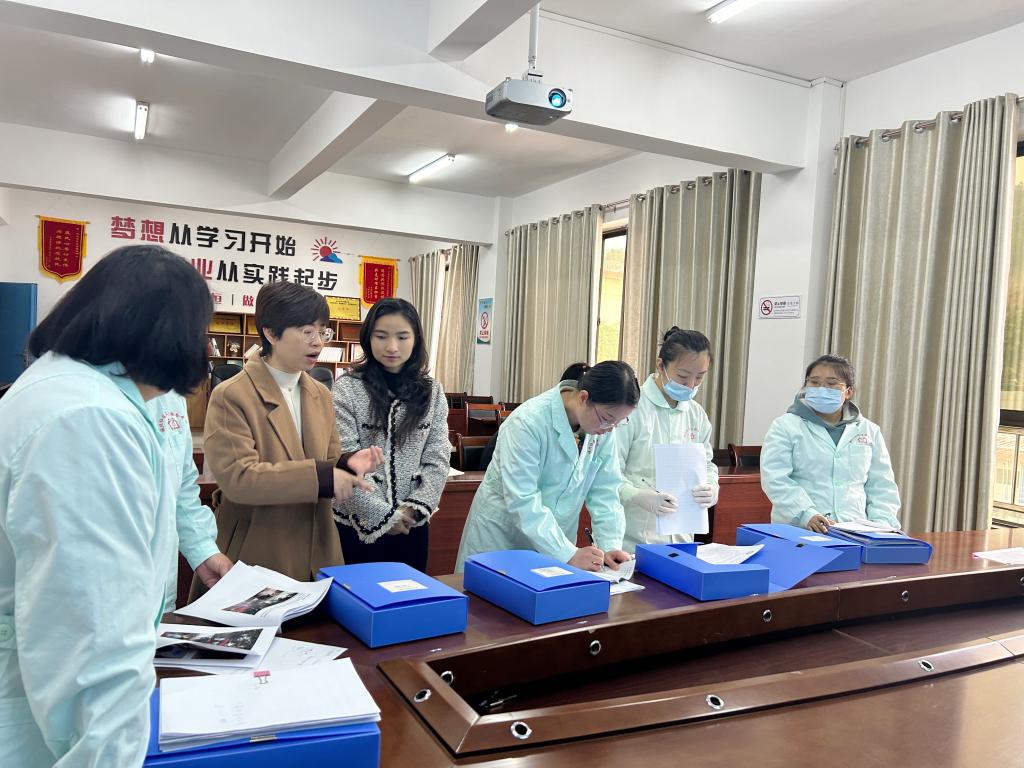 检查组正在查阅实习教学资料。